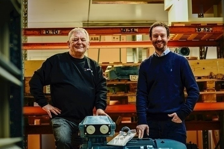 – Det hender ofte vi får bestillinger fra kunder som har direkteavtale med ABB, fordi de vet at det går raskere å få levert elektromotoren fra oss, sier Per Hugo Gregersen (t.v.) og Jonas Rossby
